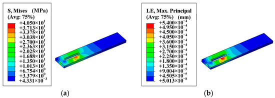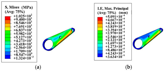 Stress–strain cloud diagram of leg placing plate: (a) stress cloud diagram; (b) strain cloud diagram.