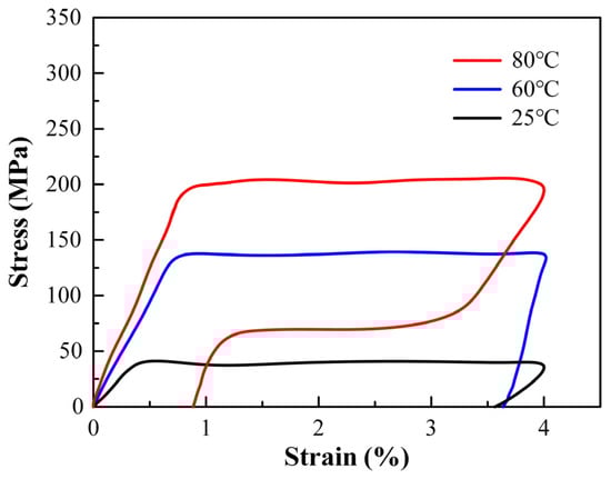 As a reference, the mechanical properties of the untreated samples are tested at different temperatures (25 °C, 60 °C, 80 °C), as shown in Figure 5.