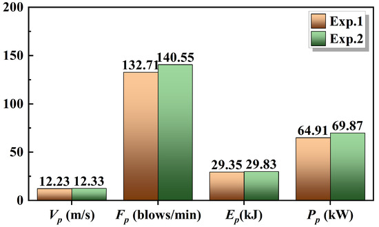 | Experiment | 31.12 MPa | 53.37 MPa | 27.10 MPa | 5.44 MPa | 12.23 m/s | 132.71 blows/min |