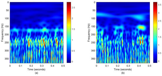 CWT-based Morlet images for (a) HS and (b) (DS) of 1024 Hz image.