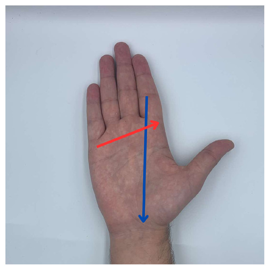 Two direction vectors are calculated to choose the axes in the coordinate system that describe the hand’s orientation. For the first one, its starting point is at the index PIP joint and its endpoint is at the user’s wrist and, respectively, at the pinky MCP and index MCP joints for the other vector. These vectors are computed via