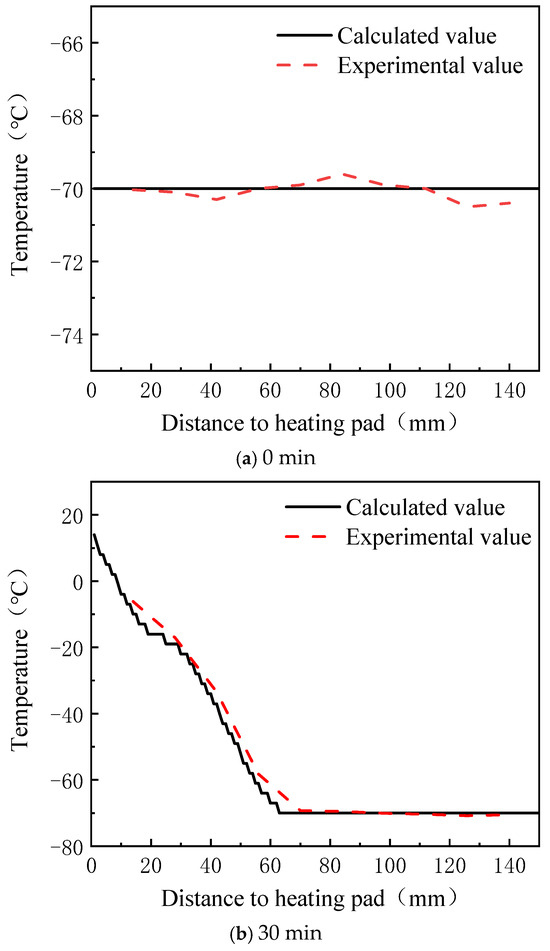 To verify the accuracy and reliability of the proposed non-contact internal temperature distribution monitoring method, this study focused on the melting process of the lubricant with a unidirectional interface in a low-temperature environment. During the experiment, transmission light spectrum data collected from the lubricant’s melting process were used to calculate the temperature distribution within the oil at various time points. These calculated temperature values were then compared to those obtained from temperature sensors for validation.