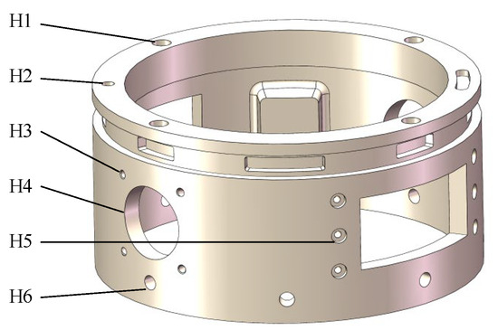 Using a typical shell part as an example, we have retrieved the hole feature machining schemes based on the process knowledge graph. Figure 6 shows six types of hole features H1-H6; the specific machining requirements are listed in Table 14. According to Table 7, the enterprise currently uses the following machining schemes: H1 → scheme 3, H2 → scheme 2, H3 → scheme 3, H4 → scheme 10, H5 → scheme 2, and H6 → scheme 3.
