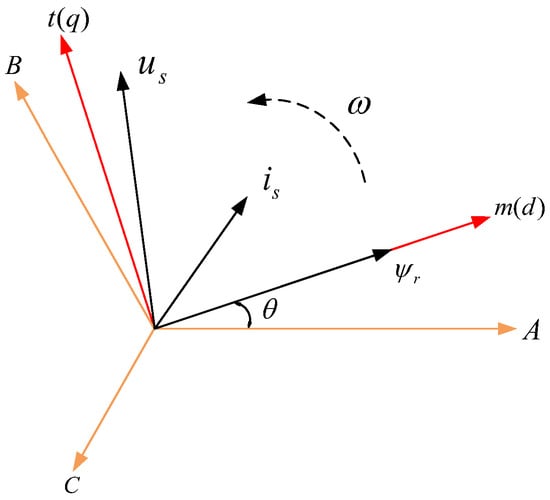 Let the coordinate system synchronize with the rotor flux vector, with the d-axis aligned with the rotor flux vector, designated as the m-axis. The q-axis is set to lead the d-axis by 90°, designated as the t-axis. This results in the rotor-flux-oriented synchronous rotating coordinate system , as shown in Figure 2.