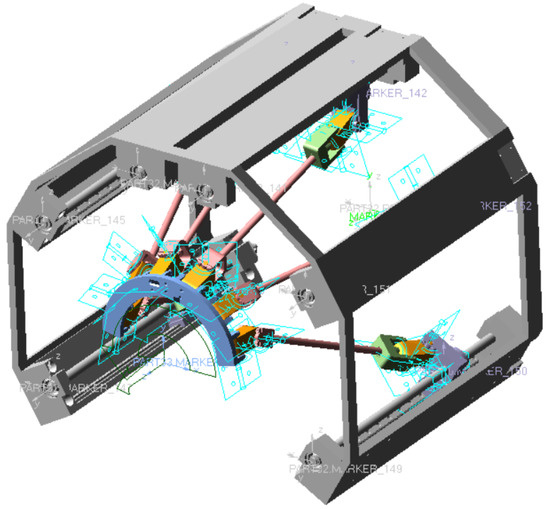 The calculation results show that the condition is met for this pose. After a clearance analysis, the results indicate that there is no hard interference. The robot model at this posture is illustrated in Figure 15.