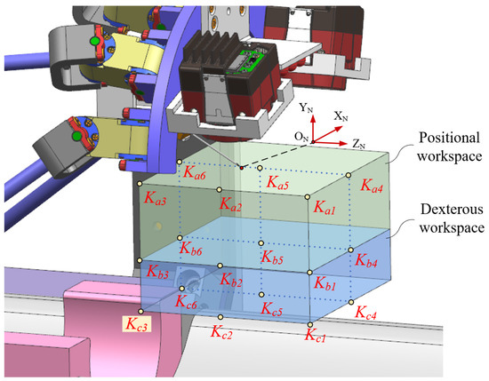 A schematic diagram of the workspace and the special points is shown in Figure 14.