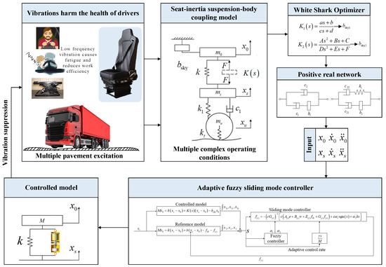 At present, research on integrating the positive real network of inertial suspension systems with skyhook inertial control to optimize the low-frequency vibration issues of heavy vehicles is relatively scarce. To address these challenges, this paper integrates skyhook inertial suspension with a positive real network, examining the impact of passive network order variations on suspension dynamics. Concurrently, the paper acknowledges the increasing technical complexity seen in seat suspension design, and the heightened challenge of developing precise models. The complex interactions between the positive real network and inerters in the skyhook suspension system are analyzed in detail. This study also delineates the constraint conditions necessary for the response index, ensuring a robust optimization framework. The research ideas and innovations of this paper are shown in Figure 1.