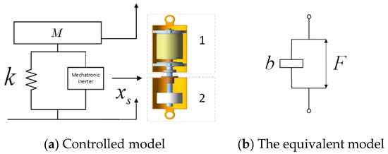 The optimized second-order skyhook seat inertial suspension serves as the reference model for performance benchmarking. Simultaneously, the control model consists of a controllable seat inertial suspension system, integrated with an electromechanical inerter. An electromechanical inerter is effectively modeled as a controllable force element that operates in conjunction with an inerter, as illustrated in Figure 10. The rotating motor is labeled ‘1’, and the ball screw inerter is labeled ‘2’. The kinetic equations of the second-order skyhook seat inertial suspension model are as follows: