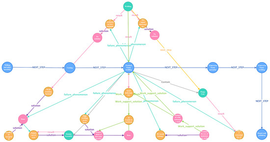 The data used in this paper fall into two categories: the production process event log data contained within the production management system and ship operation and maintenance documents. The production process event logs are records of production trajectories used for the study of ship production bottleneck identification. The operation and maintenance documents contain the historical knowledge essential for ship bottleneck analysis, which supports the bottleneck analysis results of the large language models. This paper stores both types of data in the form of triplets and unifies them in the graph database Neo4j [32]; a sample of a partial ship knowledge graph is shown in Figure 5.