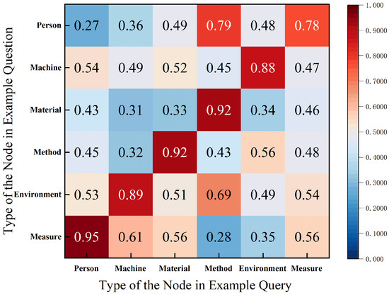 When investigating cases of failure in the SPKG bottleneck analysis, it was found that the LLMs often failed to successfully generate graph query statements. This issue is attributed not only to the limited reasoning capabilities of the LLMs but also to the lack of corresponding query examples in the Question-Query Space. After replacing the query examples in Question-Query Space, further experiments were conducted to assess the success rate of the LLMs in generating query statements when the questions and query examples involved different types of nodes, as shown in Figure 6. The results indicate that the success rate for the LLMs in generating query statements is highest when the query examples include the types of nodes relevant to the questions. Conversely, when the node types differ, the absolute success rate remains low. To improve the success rate of the SPKG bottleneck analysis, the Question-Query Space should encompass query examples that involve a variety of node types.