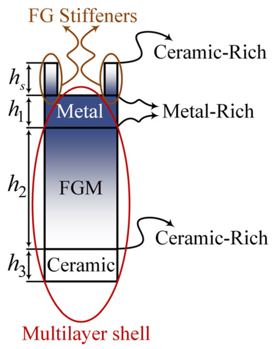Stiffeners are extensively utilized to reinforce structural systems, especially when composed of FG materials. In addition, CSs reinforced with stiffeners and composed of FG materials have various applications in different industries. In this regard, some researchers have concentrated on the vibration responses of plates and shells [1,2,3,4]. Meanwhile, others have addressed the vibration behaviors of shells made of FG materials [5,6,7].