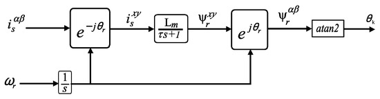 where and are the stator and rotor flux linkage, respectively, and p the pole pairs. The flux linkages are defined in Equations (8) and (9):