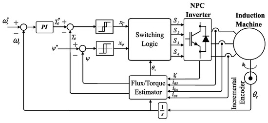 - Hakami, S.S.; Alsofyani, I.M.; Lee, K.B. Direct Torque Control of IM Fed by 3L-NPC Inverter with Simple Flux Regulation Technique. In Proceedings of the 2019 IEEE Student Conference on Electric Machines and Systems (SCEMS 2019), Busan, Republic of Korea, 1–3 November 2019; pp. 1–6. [Google Scholar] [CrossRef]