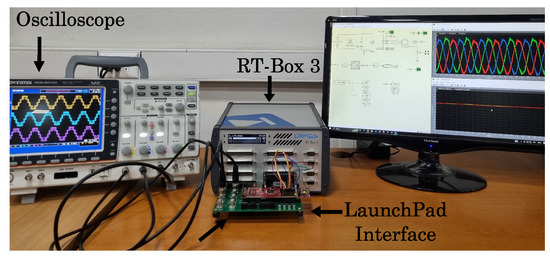 The results were obtained using a hardware-in-the-loop (HIL) setup, based on an RT-Box-3 platform and a LaunchPad interface, as shown in Figure 20. Modulation and drive control schemes were implemented in an external TI C2000 micro-controller provided with the Plexim RT-Box LaunchPad interface integrated to the launchpad interface, while the converter topology and the AC-drive ran in a real-time simulation. Waveforms of the interested system variables were routed out using the RT-Box LaunchPad interface and plotted into an oscilloscope.