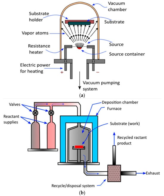 Illustrative view of: (a) PVD process, (b) CVD process (Reprinted from [24]—open access).
