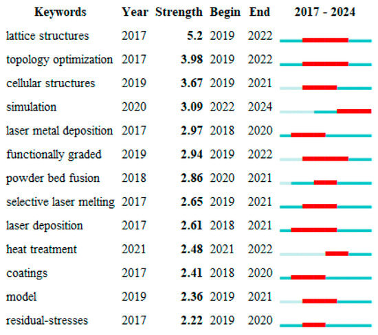 This bibliometric perspective, combined with the content analysis, offers a comprehensive understanding of FGMs developed using additive manufacturing techniques, providing valuable insights for advancing research and practical applications.