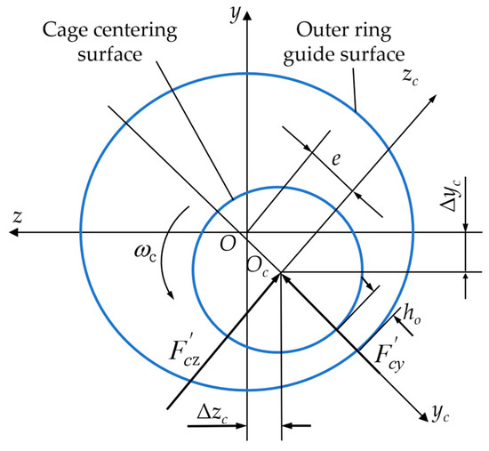 , , and are calculated in the fixed coordinate system of the cage. When establishing the differential equation of the dynamic motion of the cage, it needs to be transformed into the fixed coordinate system of the bearing: