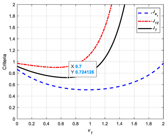 Similarly, according to Equation (8), the function T1 allows us to analyze, in the frequency domain, the sensitivity of the output A1(s) to the measurement noise N1(s). In fault mode (Ua(s) = 0), the function T1 = 0, thus reflecting an insensitivity of the output A1(s) to measurement noise over the entire frequency space.