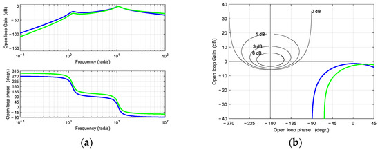 Thus, according to Equation (7), the function S1 makes it possible to analyze, in the frequency domain, the influence of the control loop on the sensitivity of the output A1(s) to the disturbance V0(s). Indeed, in fault mode (no regulation, Ua(s) = 0), the function S1 = 1, and the sensitivity of A1(s) to V0(s) is directly linked to HA1V0(s).