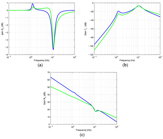 Finally, the R1 function allows us to analyze, in the frequency domain, the sensitivity of the Ua(s) command to the measurement noise N1(s) and to the disturbance V0(s) (Equation (9)). In fault mode, the R1 function = 0.