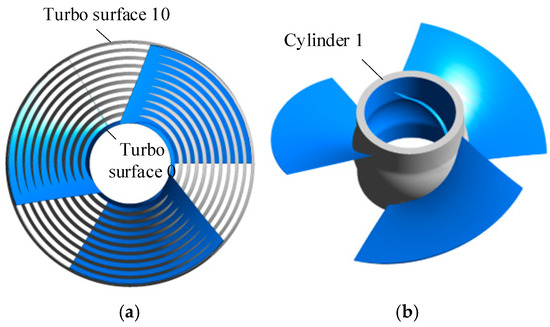 Schematic diagram of (a) turbo surface and (b) cylinder of impeller flow channel.