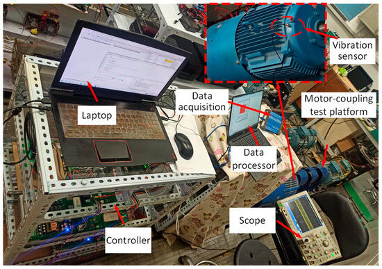 In order to investigate the effects of random PWM techniques on the current and vibration of the motor, detailed experiments are carried out on an eight-pole surface-mounted permanent magnet motor, and the experimental platform is shown in Figure 12. The experimental setup includes a permanent magnet motor, loader, controller, vibration sensor, and Jiangshu Union energy vibration test system.