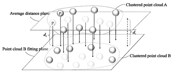 Calculate the standard deviation of the mean distance from the point cloud to the plane . The interior point distance threshold and the interior point ensemble are obtained according to Equations (14) and (15):