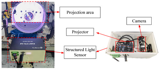 Due to space constraints at the actual production assembly station, the sensor was installed on a fixed base at a distance of 600 mm from the assembly line and at a height of 800 mm. Furthermore, the projector resolution was set to 912 × 1140 pixels to ensure that phase variations were distinct, thereby facilitating subsequent phase unwrapping and contour reconstruction. This resolution strikes a balance by capturing sufficient details while keeping the data volume in check, which avoids the computational burden of excessively high resolutions.