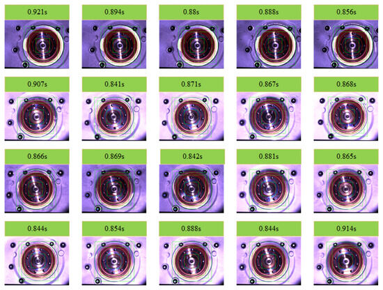 The inspection area was divided into four main sections. Since the captured target areas are not standard circles, using a uniform scaling factor could lead to matching errors. Therefore, based on practical testing experience, specific scaling factors and are set for different regions to accommodate their shape characteristics, ensuring the accuracy and reliability of the matching process. Additionally, considering the effects of surface heat treatment, oil contamination, and high exposure, parameters and are set based on empirical knowledge. These parameters are determined through multiple experiments and practical tests, aiming to optimize the effectiveness of template matching. The above parameters are shown in Table 5 below. Meanwhile, the standard range of assembly for measuring height difference D was within 0.2 mm, the number of standard assemblies on the assembly line that meets the requirement of more than 98% within 0.2 mm, and subsequent experiments were carried out to compare the data between the results of automatic measurement and manual measurement.