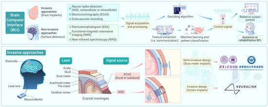 Methodologies and technical approaches of BCI’s (upper) and recent reports from US and Chinese teams employed invasive methods (lower). Telepathy used invasive design while NEO used semi-invasive [119].