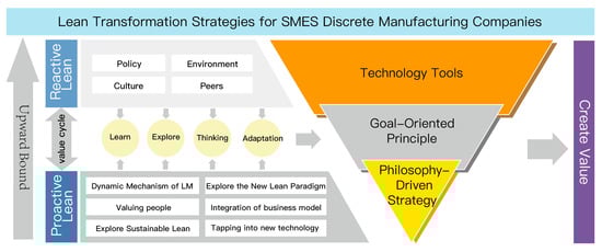 - Based on the literature data, in this study, we have constructed a framework for implementing lean technologies in small and medium-sized discrete manufacturing enterprises and proposed six strategies for their implementation. These strategies include investigating the dynamic mechanisms of lean management, exploring new paradigms of lean, conducting sustainable lean research, tapping into new technologies within the enterprises, focusing on human values, and integrating new business models.