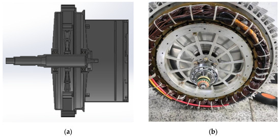 Rotor bearing distribution of the wing motor. (a) rotor motor cutaway view. (b) Faulty bearing location diagram.
