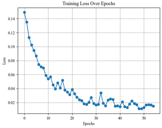 The test results based on the WPT-CEEMD-CNN-LSTM model on the CWRU faulty bearing dataset demonstrate its strong performance in fault diagnosis, particularly in fault type identification and classification accuracy. The evaluation metrics—Recall, Precision, and F1 Score—effectively measure the model’s classification ability. As shown in Table 8, the model achieves a 100% Recall, Precision, and F1 Score for most fault categories, indicating exceptional classification performance. For the 0.007-inch inner ring and 0.021-inch outer ring faults, despite F1 Scores of 90.00% and 90.01%, the model maintains a high classification accuracy, with only a few misclassifications. The confusion matrix further confirms that most categories are classified with a high precision, with minimal misclassified samples, highlighting the model’s strong capability in fault recognition. Additionally, the t-SNE visualization validates the model’s ability to extract well-separated and highly distinguishable features, as evidenced by clear clustering structures. Ultimately, the model achieves an impressive 95.92% classification accuracy on the test set, demonstrating its efficiency and robustness in fault detection.