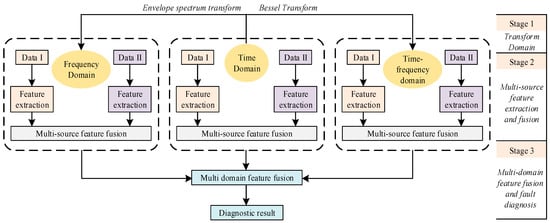 In the following section, we will describe the envelope spectral transform and Bessel transform in the first stage, the feature extraction module and the multi-source feature fusion module in the second stage, and the multi-domain feature fusion module in the third stage, respectively.