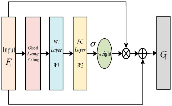where and denote the excitation signals of and , respectively. During feature fusion, excitation signals are applied to the feature vectors as weights, allowing more important features to contribute more significantly to the final output, while the influence of less important features is diminished. This mechanism enhances the model’s learning capability, thereby improving its performance.