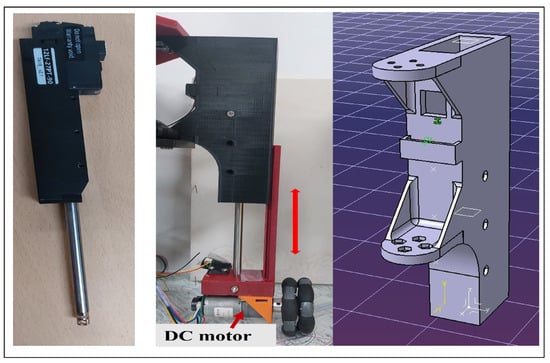 To enable the robot to maintain a consistent speed, the proposed system incorporates a total of four omni wheels, with each wheel being connected to a dedicated DC motor. In addition, the system incorporates four linear RC servo actuators, which play a crucial role in facilitating the robot’s ability to climb stairs. the inclusion of a telescopic leg with a linear RC servo actuator allows the robot to adjust to different changes in the landscape, such as obstacle overcoming. Figure 2 shows the linear RC servo actuator and its housing. The extensive balancing responses facilitated by the linear RC servo actuators help to ensure that the robot’s center of mass remains within its base of support. Furthermore, the system includes a rotary RC servo actuator that allows for the adjustment of the center of mass, ensuring stability and effective climbing capabilities. Table 1 lists the parameters of the linear RC servo actuator, which includes a position sensor of a 10 KΩ linear potentiometer.