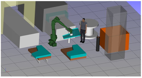 The robot implemented is not in substitution of the operator because the implementation wants to obtain a system where humans and robots collaborate, where the robot performs high-load activities. In particular, this work considers the ergonomic risk as the principal factor in the system evaluation. The tasks reported in Table 1 are divided between the operator and the robot. In the simulated scenario, the robot’s tasks are as follows: