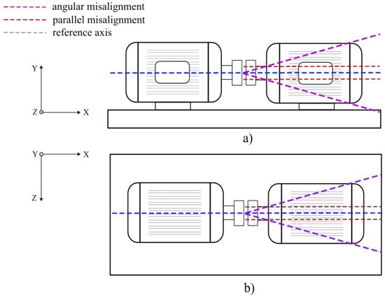Misalignment fault description: (a) vertical plane and (b) horizontal plane.