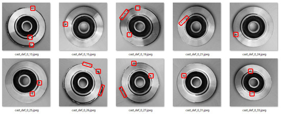 Examples of brake rotors with defects [17], in which typical defect parts are marked with red boxes.