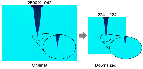 Downsizing process to fit the input layer of VGG19. There is a concern that features of small and thin defects may be lost.