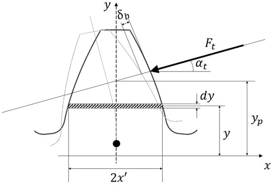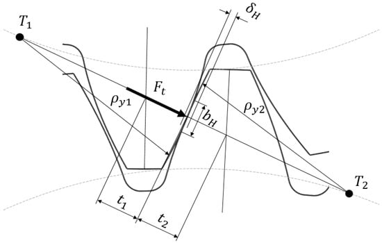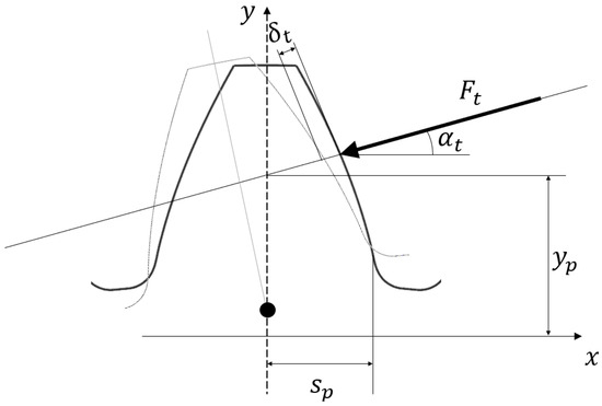 - Tooth bending deformation (see Figure 7 for the meaning of the parameters)