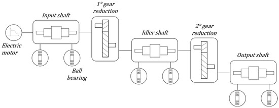 In very general terms, an automotive e-axle is a mechanical transmission system that combines the presence of some main elements including electric motors, connecting shafts, bearings, and gears. In order to describe the structural behavior of these elements, it is necessary for each of them to deduce a mathematical model that is reliable and computationally efficient. It was decided to model each of these functional blocks by means of a lumped-parameter approach that allows the main characteristics to be taken into account without having to struggle with a detailed discretization. Each block is defined with its inputs and outputs in order to be connected with adjacent blocks using sequential logic to easily compose even complex embodiments. The modeling details of each block are presented below.