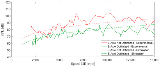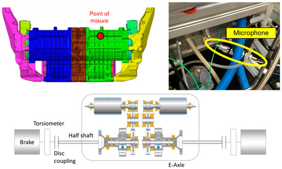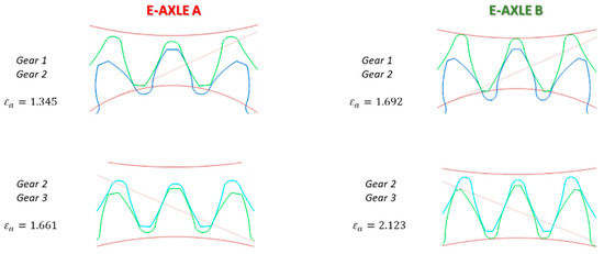 Optimizing the acoustic performance of gears has become a major challenge in the design of mechanical systems, particularly for e-axles, whose spread is being promoted by the boost towards the massive electrification in the automotive industry. The design of electric axles is a key element in the architecture of electric and hybrid vehicles, enabling the conversion of electrical energy generated by the electric machine into mechanical energy transmitted to the wheels via a gear reducer. The use of a high-ratio gear reducer is mandatory since the speed of the electric motor is significantly higher than that required by the tires. High manufacturers’ standards require that the design of such a gearbox must ensure efficiency, durability, and also acoustic comfort. The acoustic optimization of gears can be addressed with different design strategies, involving combined aspects of their geometry and manufacturing: the choice of the number of teeth and their macro-geometry [1]; tooth profile corrections (micro-geometry) that alter the shape with respect to the involute profile [2]; and the control of the surface finishing and manufacturing tolerances [3,4]. Each element may contribute to improving the overall acoustic performance.