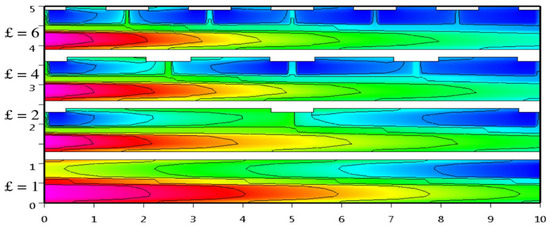 The existence of such undesirable properties can be related to the flawed design of microchannels and their shapes. Maldistributions lead to increased fluid flow resistance, which, in turn, causes increased power consumption and reduced thermal characteristics due to varying flow rates in the individual channels. Longer channel lengths and larger areas for fluid flow can lead to a desirable flow distribution [125], but they might also reduce the heating capacity of the HX if designed only for the best flow distribution. A proper trade-off between both properties must be found [126]. A better understanding of the flow distribution can be predicted using an artificial neural network or genetic algorithm for the whole MCHE [127,128].