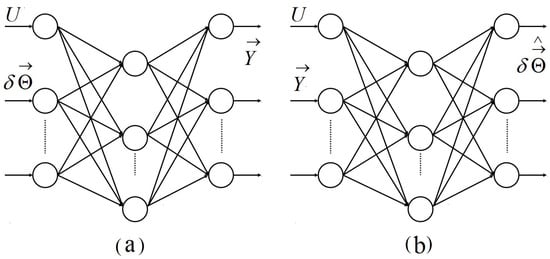 MLP-based simplified models: (a) direct model; (b) inverse model (The arrows mean the direction of signals, and the circles are network’s neurons).