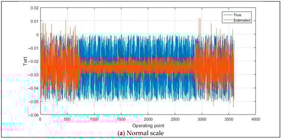 where the matrix M represents a priori expected values for health parameter estimation errors [15]. The estimates by Equation (9) proceed from the minimization of either the distance between the model and the measurements or the norm of the fault parameter vector . These estimates are biased but have reduced random errors. The linear solutions given by Equations (6)–(9) can be presented in a general form: