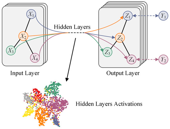 GCNs, as a novel architecture for DL-based methods, are specialized for processing graph-based data and non-Euclidean data [25]. Compared to the CNNs mentioned above, GCNs not only extract node features but also capture the structural relationship of nodes. By aggregating information from neighboring nodes, GCNs can effectively learn fault-based representations. The detailed architecture of GCNs is illustrated in Figure 3.