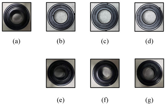 As illustrated in Figure 9, the experimental platform consists of a speed controller, motor, shaft, acceleration sensor, bearing module, and data acquisition board. Unprocessed vibration signals were collected from the test bearings using accelerometers mounted on the bearing casing under four distinct operating conditions (i.e., 65 Hz, 70 Hz, 75 Hz, and 80 Hz), with a sampling rate of 25.6 kHz and a constant load maintained across all speeds. To simulate various fault types and severities, single-point defects were introduced into the inner ring, outer ring, and rolling elements of the test bearings, as shown in Figure 10. The bearing conditions are categorized into four groups: normal (N), inner ring fault (IRF), outer ring fault (ORF), and roller ball fault (RBF). Each of the IRF, ORF, and RBF conditions includes two severity levels, denoted as I and II. In total, the HUSTbearing dataset comprises seven distinct bearing health conditions.