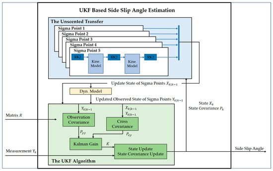 The total structure of the UKF-based sideslip angle estimation.