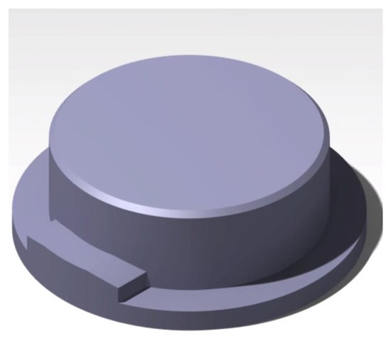 The geometry selected for training the compensation CNN had to meet specific requirements: it must be quick to print, easy to analyze mathematically, and suitable for comparing the proposed methodology to other 3D printing error compensation methods. Thus, a primary cylinder, a base, and a clocking feature were chosen. This configuration takes less than one hour to print, and the cylindrical portion of the point cloud can be analyzed mathematically to determine global deviation metrics such as RMS, mean, and standard deviation. Cylinders are also commonly used in other 3D printing error compensation methodologies, helping to reduce distortions induced by the heated build plate and minimizing misalignment errors. Figure 5 shows a rendered version of the chosen geometry.
